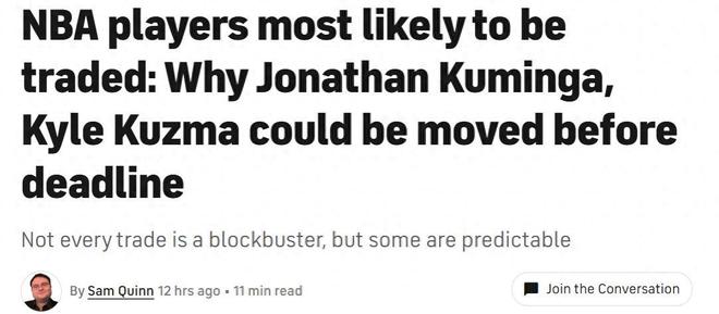 截止日前谁会被交易?美媒晒TOP5名单:库明加2年4850万提前布局-山猫体育免费足球直播